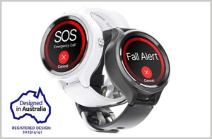 An SOS watch (new 4GX 2025 model) that works using available mobile network coverage – not just at home. When the side button is pressed it sends your location & starts calling up to 6 people (can call 000). Features inbuilt fall detection with speakerphone & microphone in watch. Alarm “talks” to you throughout your emergency. Showerproof. No monthly monitoring fees.