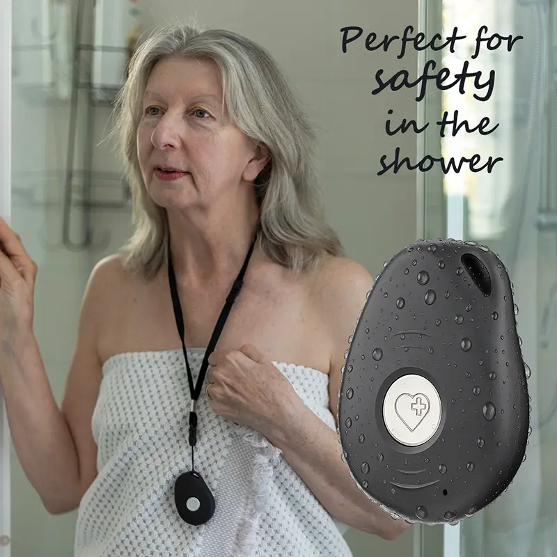 Yes! The pendant has IP67 water resistance rating, making it fully showerproof. Many falls happen in the bathroom, so you can wear it with confidence while showering or bathing. However, it should not be submerged in water for extended periods.